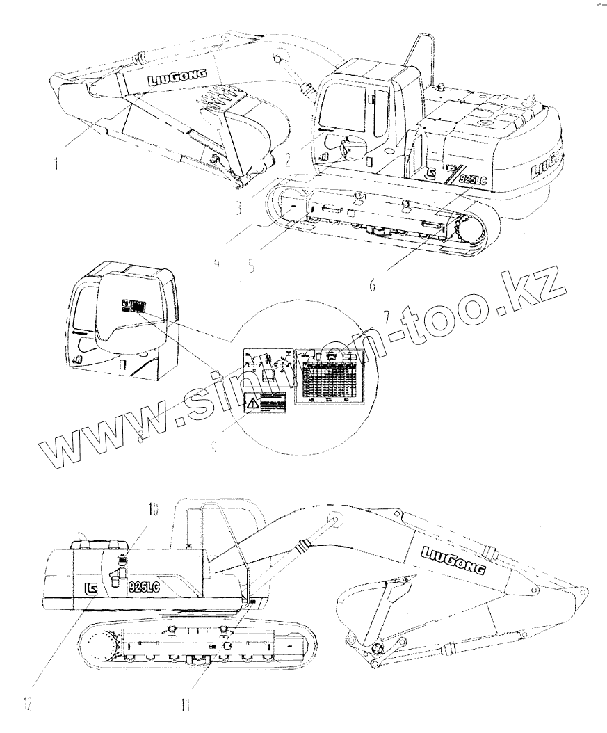 Каталог запасных частей к технике: LiuGong CLG-925. Предупредительные знаки и таблички