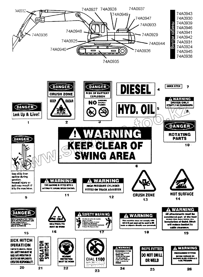 Каталог запасных частей к технике: LiuGong CLG-925. Предупредительные знаки и таблички