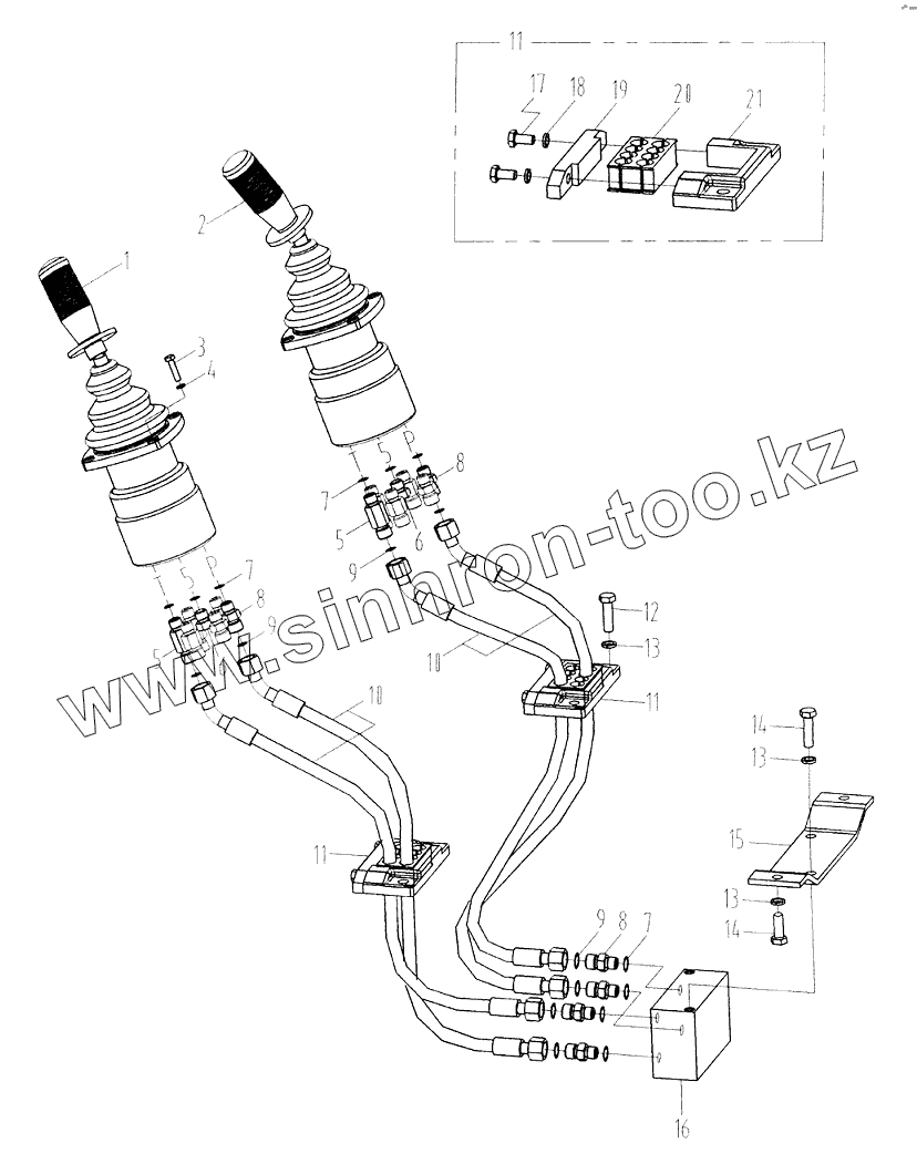 Каталог запасных частей к технике: LiuGong CLG-925. Трубопровод гидрораспределителя с ручным управлением