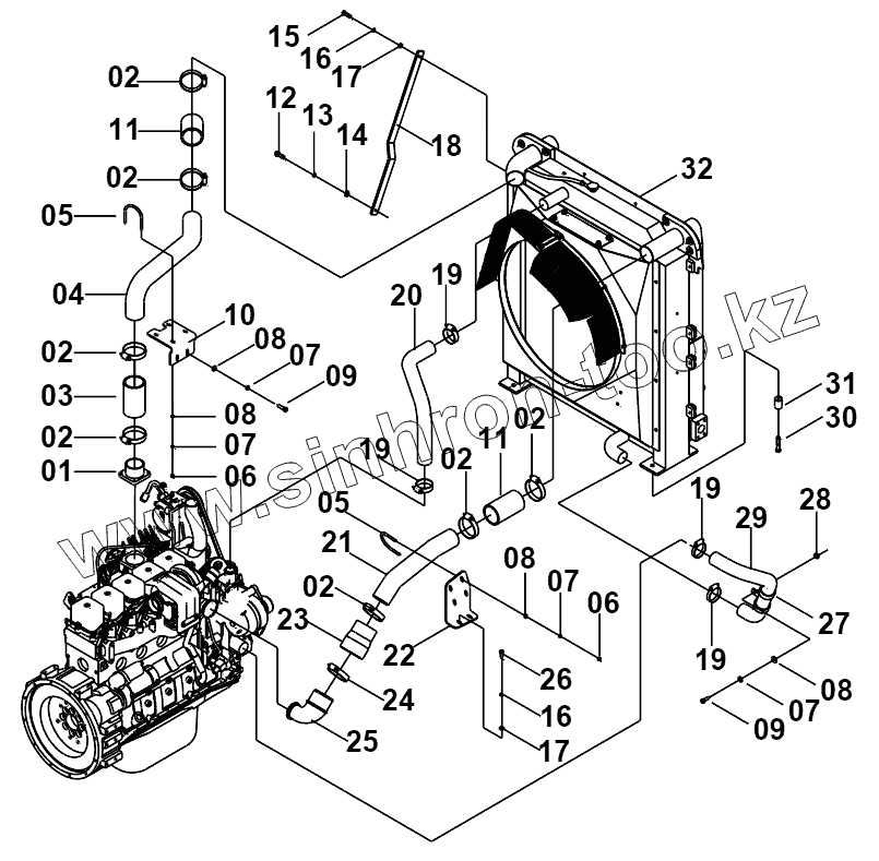 Каталог запасных частей к технике: LiuGong CLG-925D. 00E0552(K) COOLER SYSTEM PIPE
