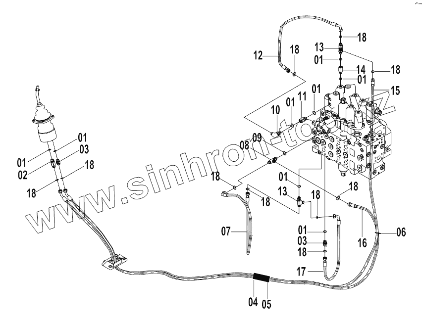 Каталог запасных частей к технике: LiuGong CLG-925D. 12E0201 PILOT HYDRAULIC SYSTEM (E)