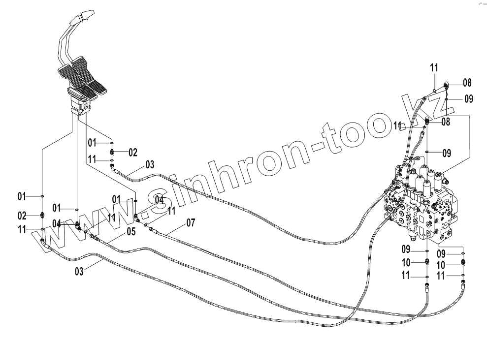 Каталог запасных частей к технике: LiuGong CLG-925D. 12E0201 PILOT HYDRAULIC SYSTEM (F)
