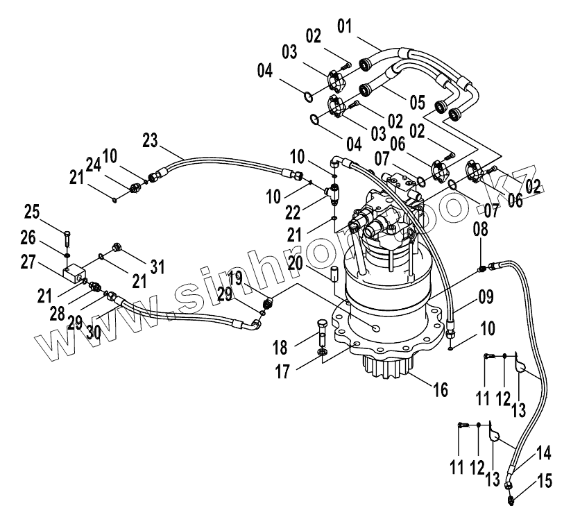 Каталог запасных частей к технике: LiuGong CLG-925D. 15E0513(J) SWING PIPINGS