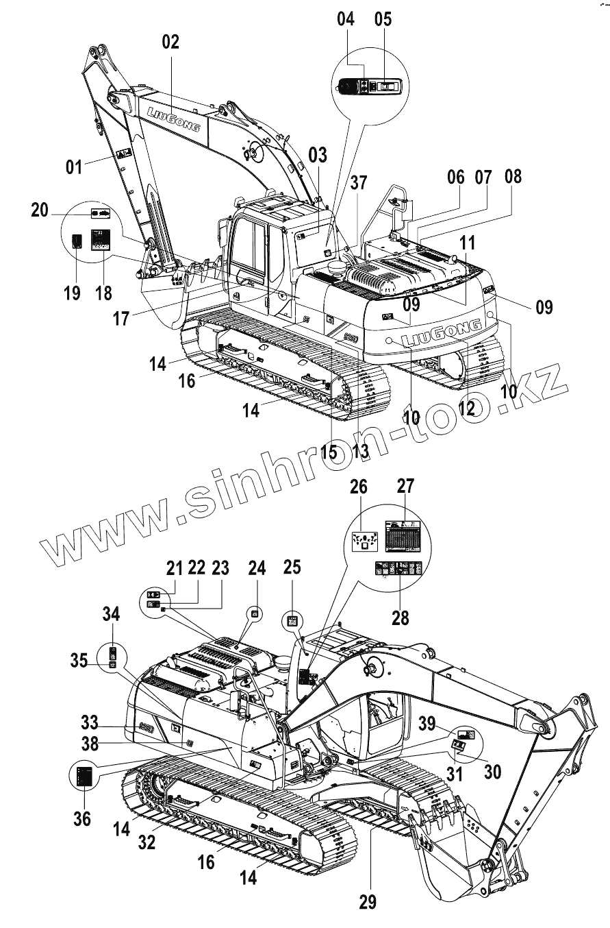 Каталог запасных частей к технике: LiuGong CLG-925D. 45E1002 004 DECAL GROUP