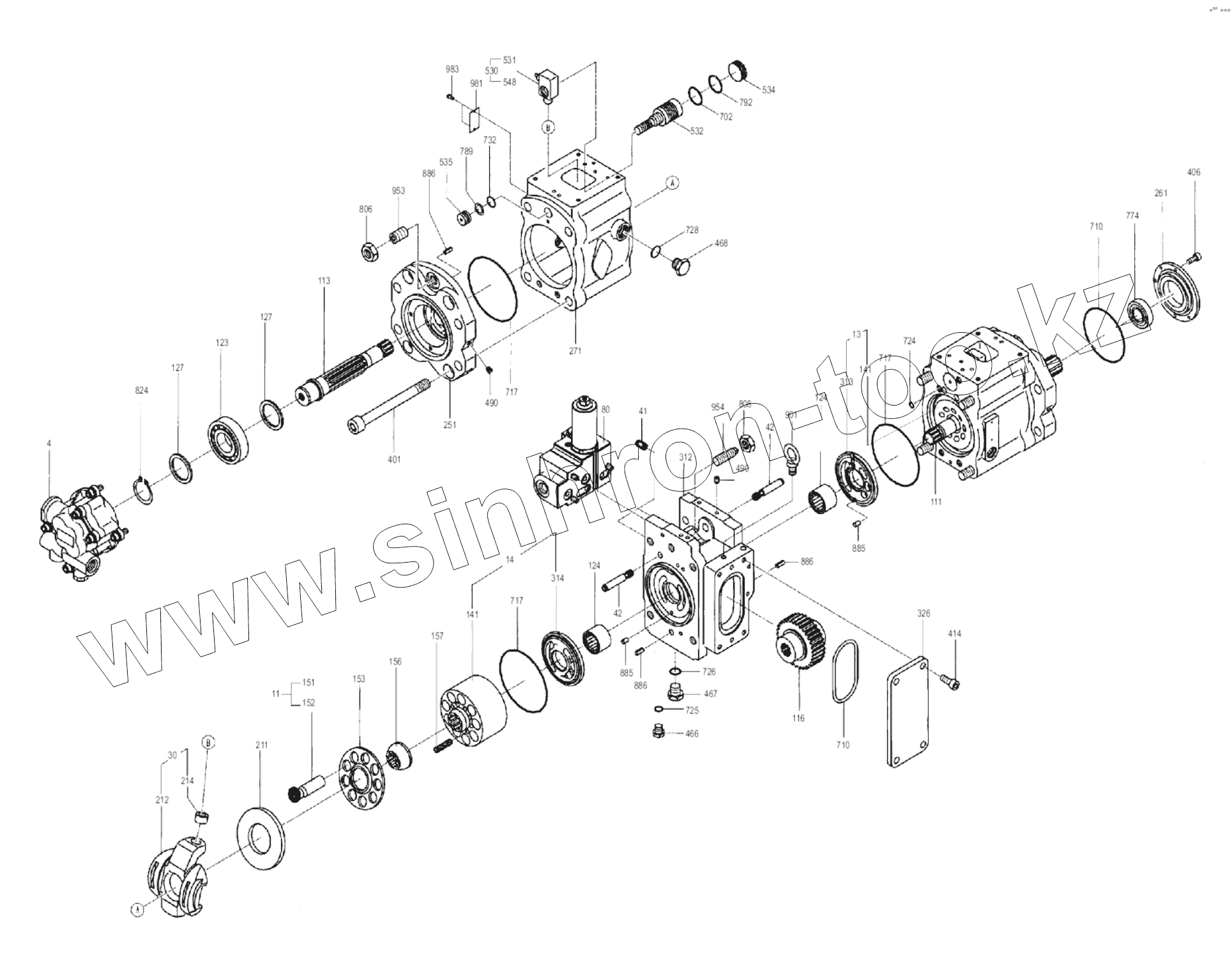 Каталог запасных частей к технике: LiuGong CLG-933E. 11C1570-000-00 MAIN PUMP AS