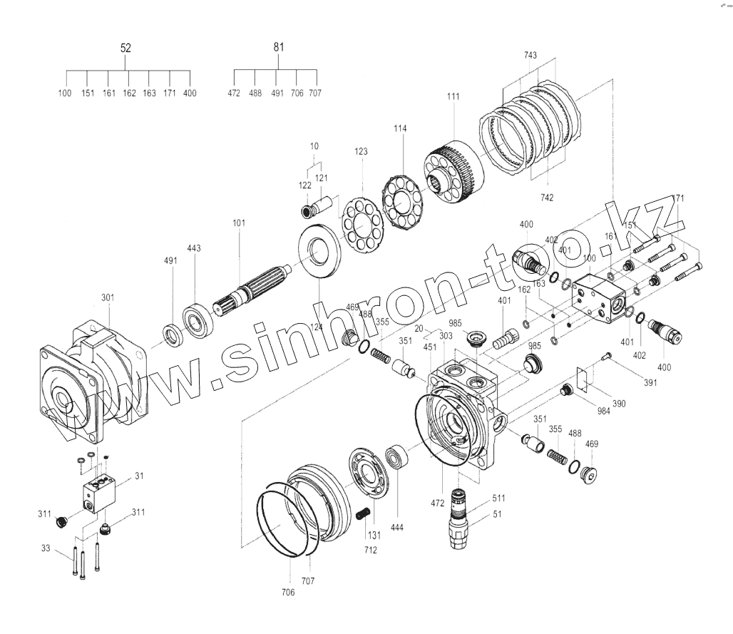 Каталог запасных частей к технике: LiuGong CLG-933E. 11C2656-001-00 SWING MOTOR