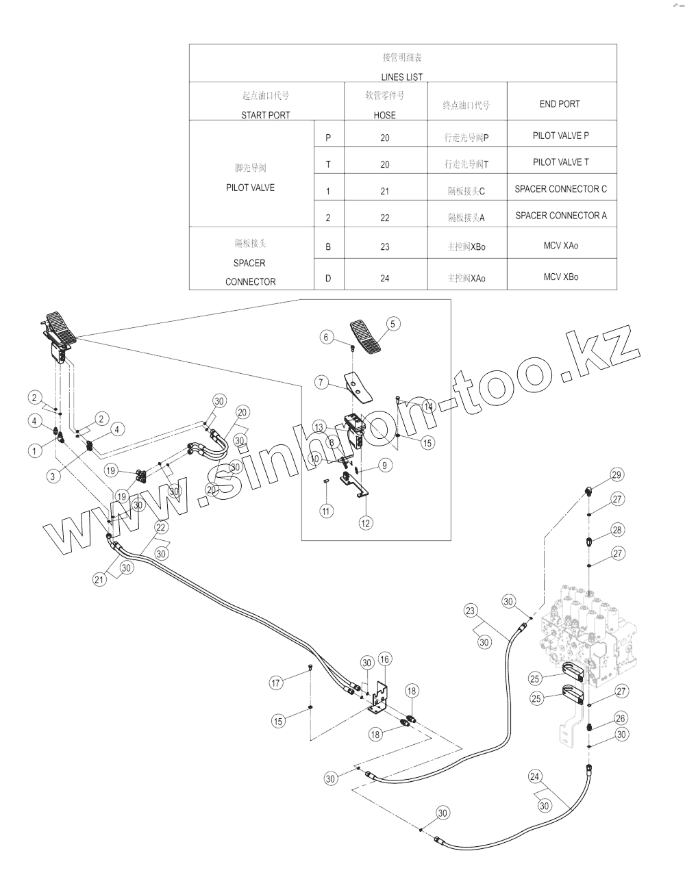 Каталог запасных частей к технике: LiuGong CLG-933E. 12Y0353-000-00 ATTACHMENT PILOT LINES