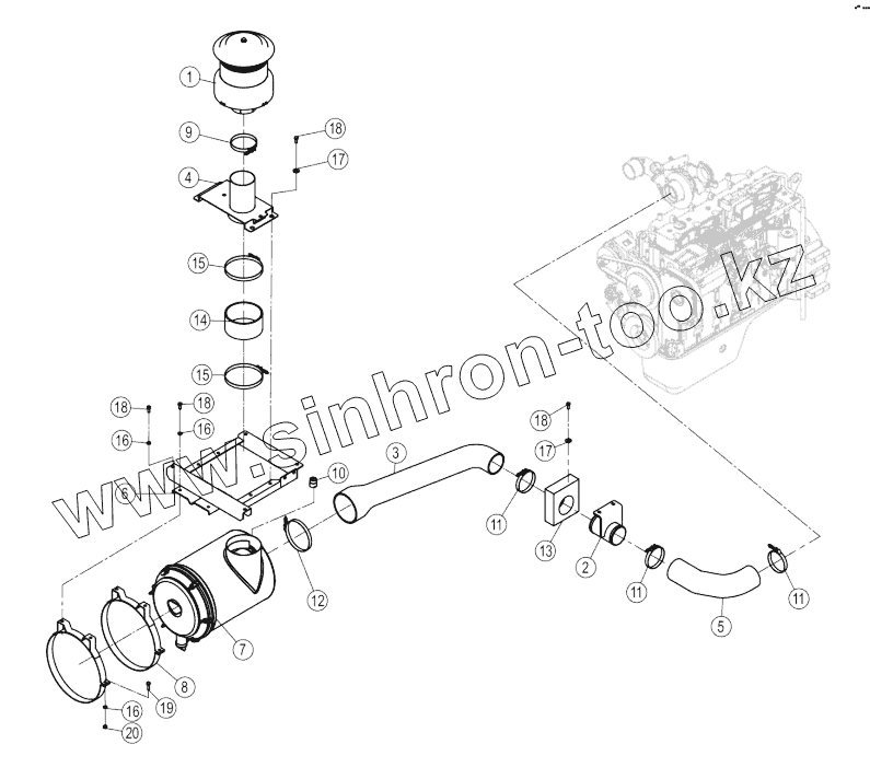 Каталог запасных частей к технике: LiuGong CLG-933E. 40C7006-000-00 INTAKE AND EXHAUST SYSTEM