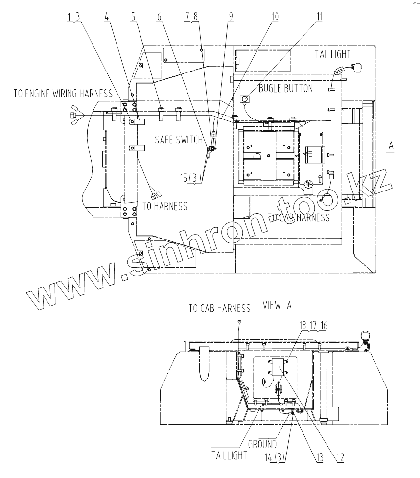 Каталог запасных частей к технике: LiuGong CLG-B160. 46C5563 FRAME WIRING