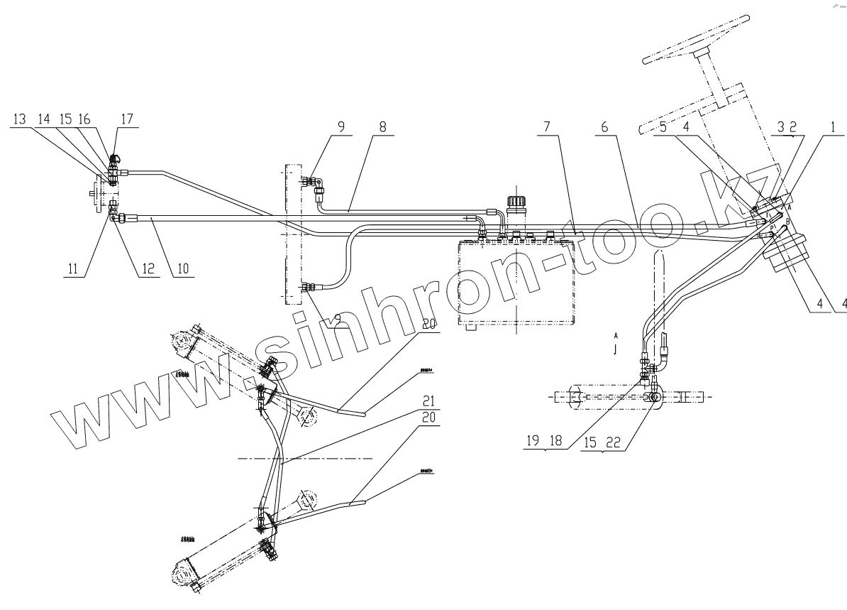 | 21 | 20491-22T/70011-22x2W08x1300+RC | Interconnection hose of left and right cylinders | |