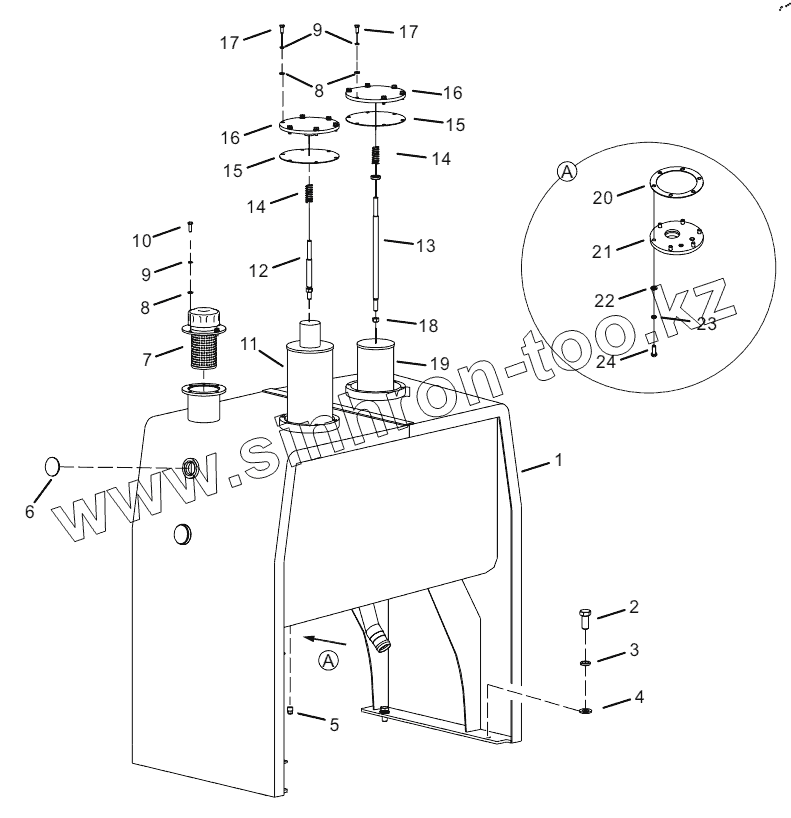 Каталог запасных частей к технике: Lonking (LongGong) CDM-833. HYDRAULIC TANK ASSEMBLY (30889900054)