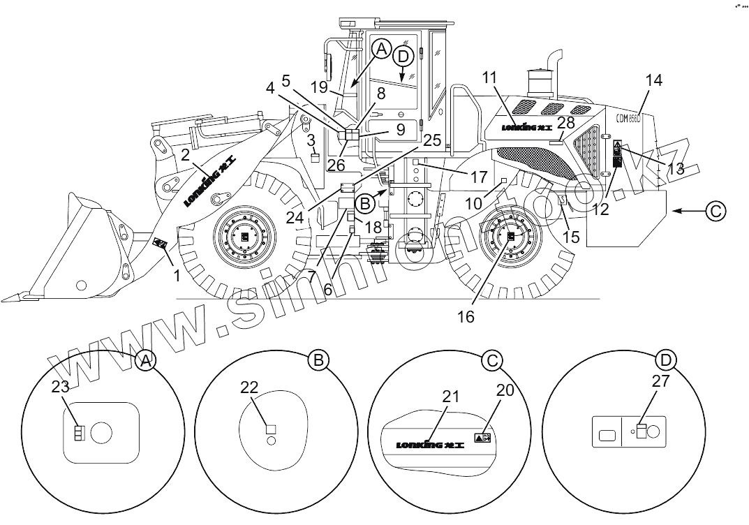 Каталог запасных частей к технике: Lonking (LongGong) CDM-856D. Warning Mark
