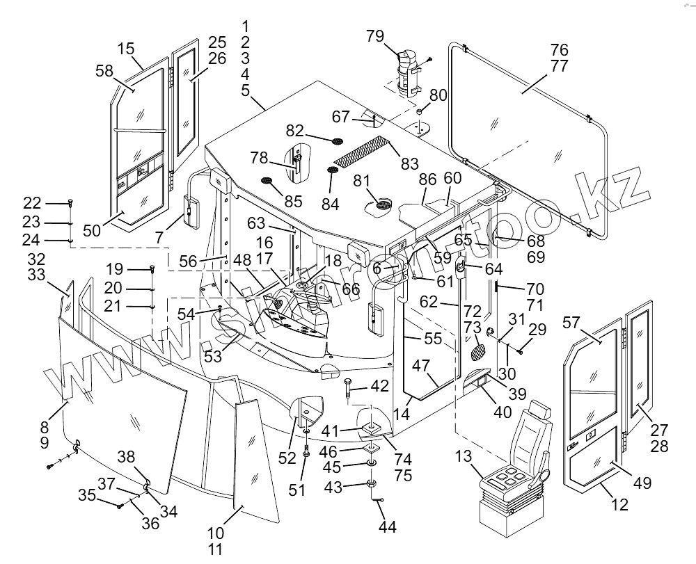 Каталог запасных частей к технике: Lonking (LongGong) CMD-835E.01I. Cab System (CDM835E.12IV)