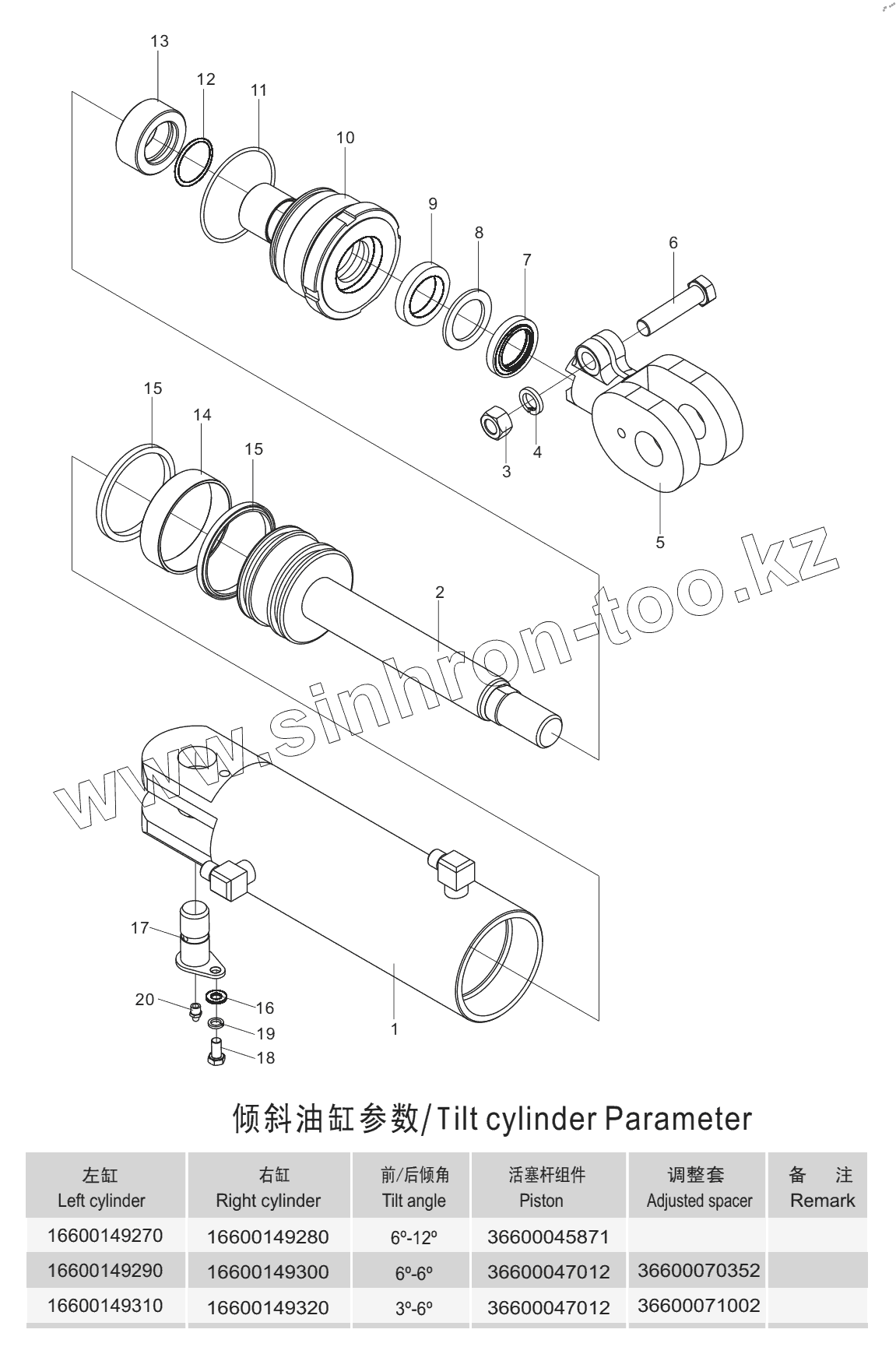 Каталог запасных частей к технике: Lonking (LongGong) LG20, LG25, LG30, LG35. Tilt cylinder assembly