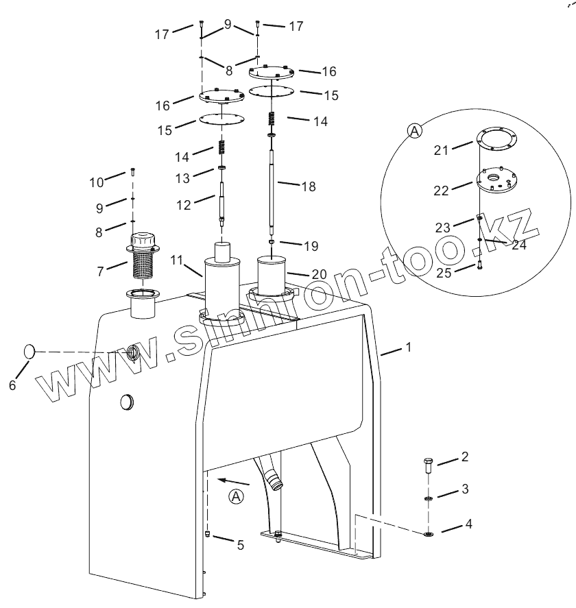 Каталог запасных частей к технике: Lonking (LongGong) LG833NG. HYDRAULIC TANK ASSEMBLY (30889900054)