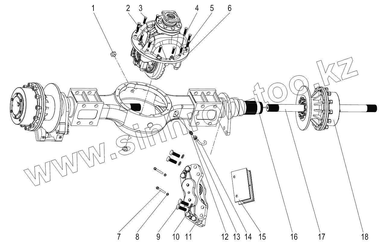 Каталог запасных частей к технике: Lonking (LongGong) LG833NG. REAR AXLE ASSEMBLY (16480305060)