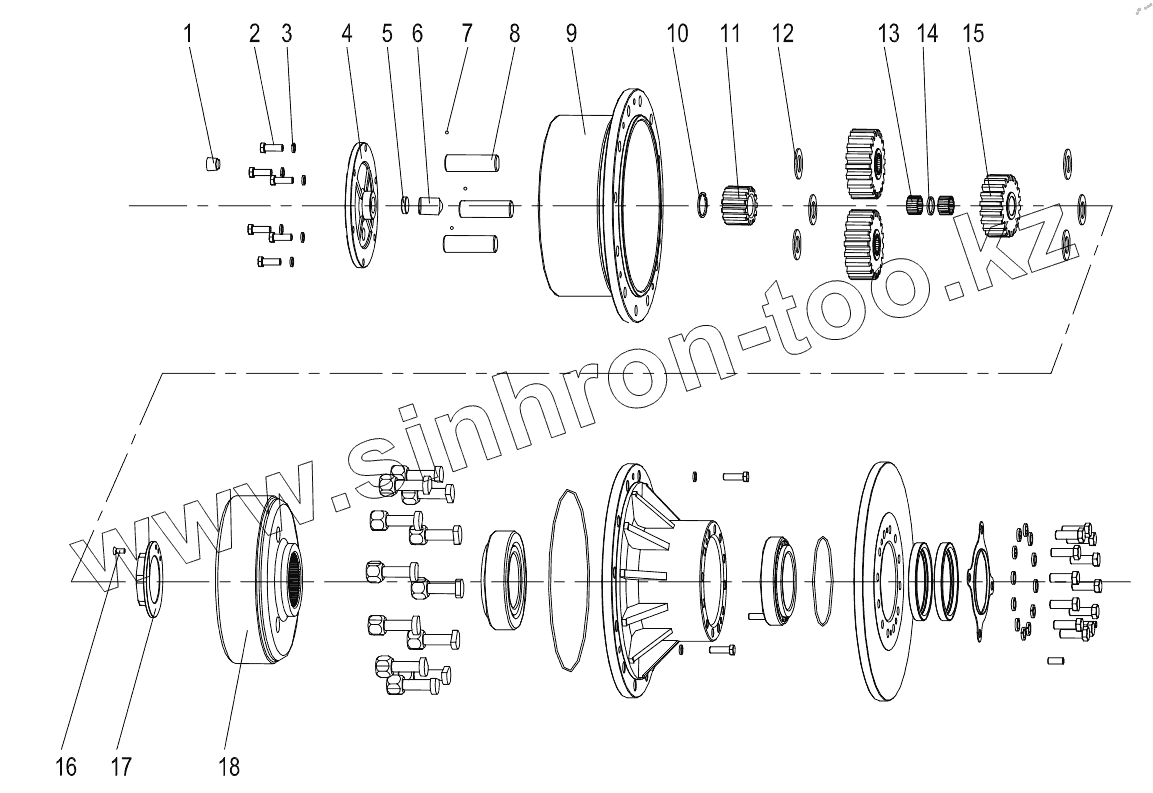 Каталог запасных частей к технике: Lonking (LongGong) LG833NG. WHEEL REDUCTOR ASSEMBLY (36402000031)