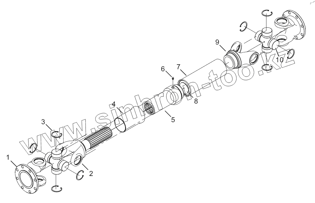 Каталог запасных частей к технике: Lonking (LongGong) ZL50NC. FRONT DRIVE SHAFT ASSEMBLY (17401000069)