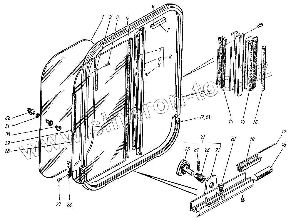 Каталог запасных частей к технике: ЛЗА 4014. Окно двери