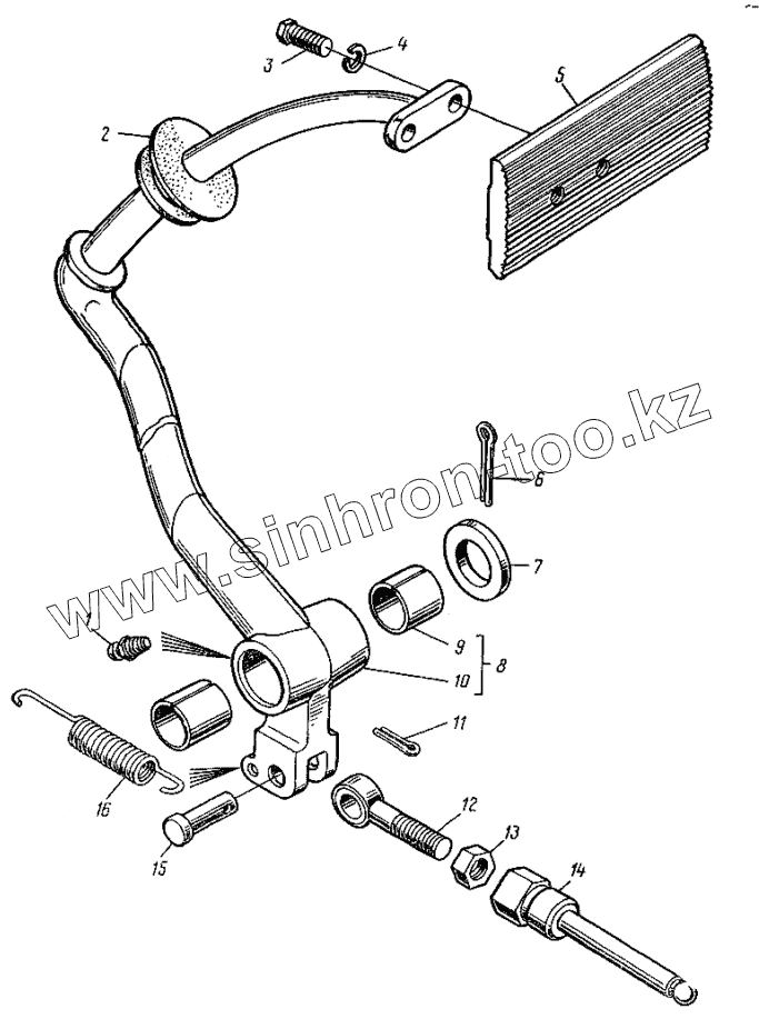 Каталог запасных частей к технике: ЛЗА 4014. Педаль и привод тормоза