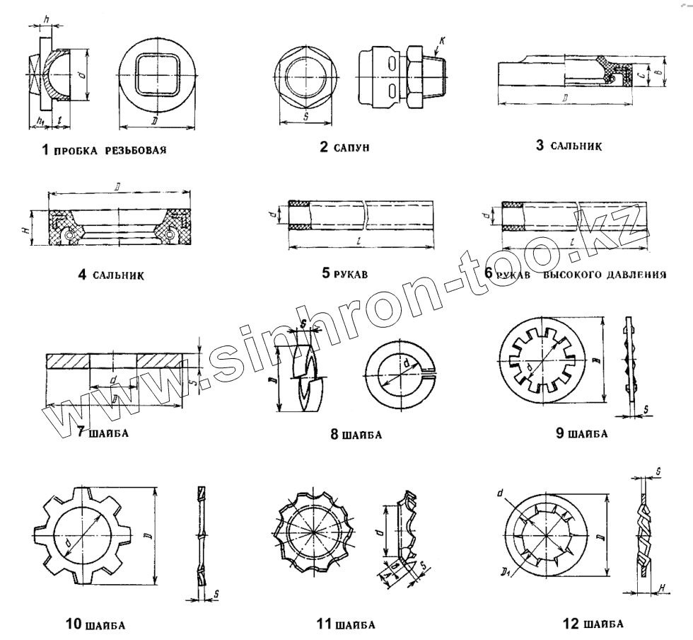 Каталог запасных частей к технике: ЛЗА 4014. Пробки, сапуны, сальники, рукава, шайбы