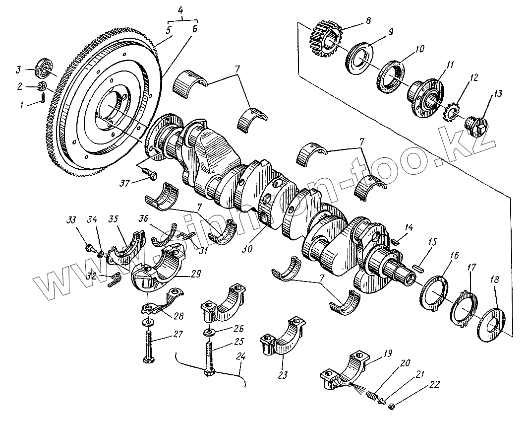 Каталог запасных частей к технике: ЛЗА 4014. Вал коленчатый и маховик