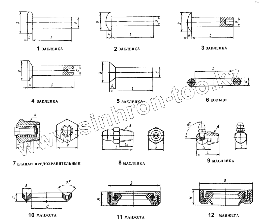 Каталог запасных частей к технике: ЛЗА 4014. Заклепки, кольца, клапана, масленки, манжеты