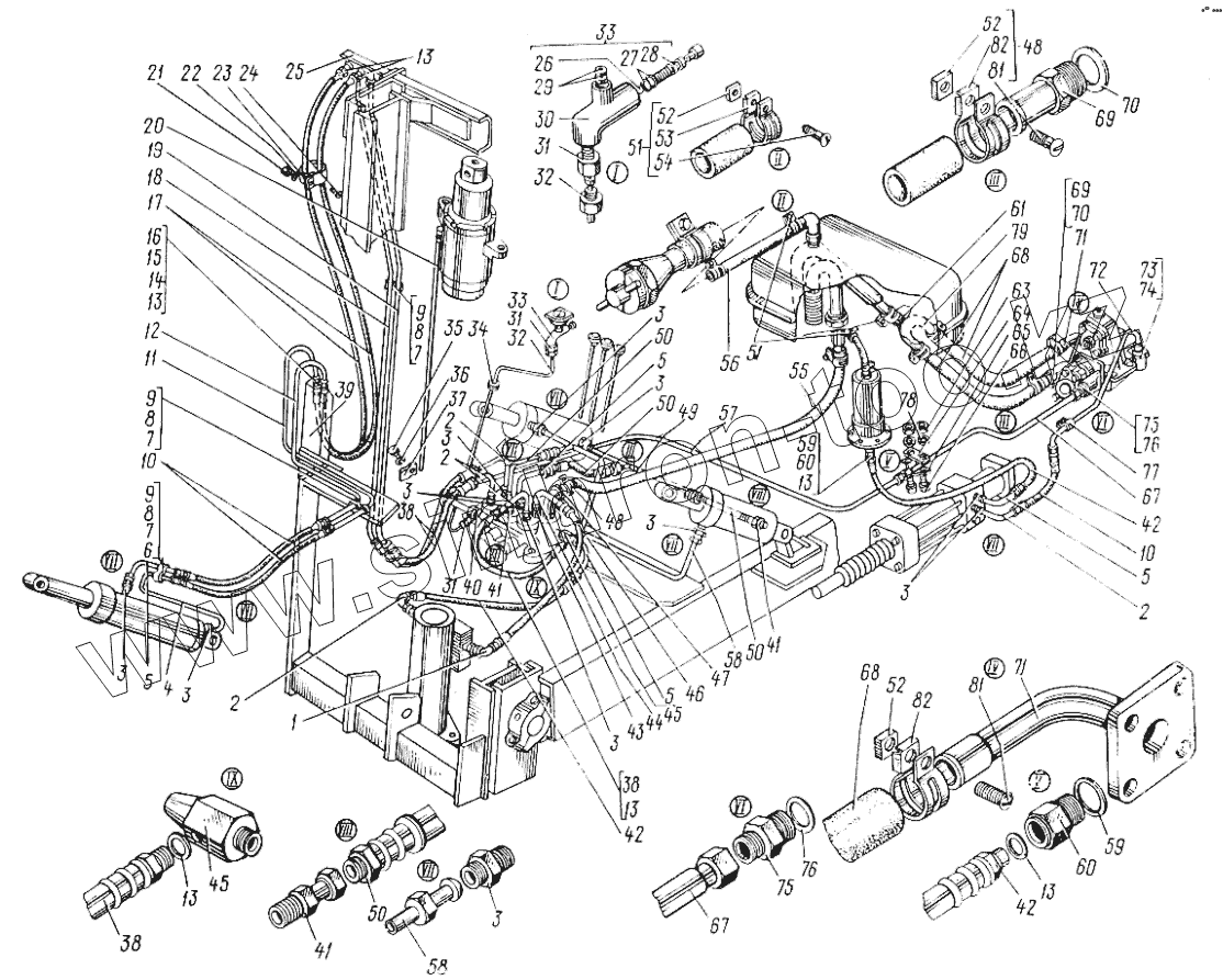 Каталог запасных частей к технике: ЛЗА 4043М. Гидропроводы погрузчика 4045Р