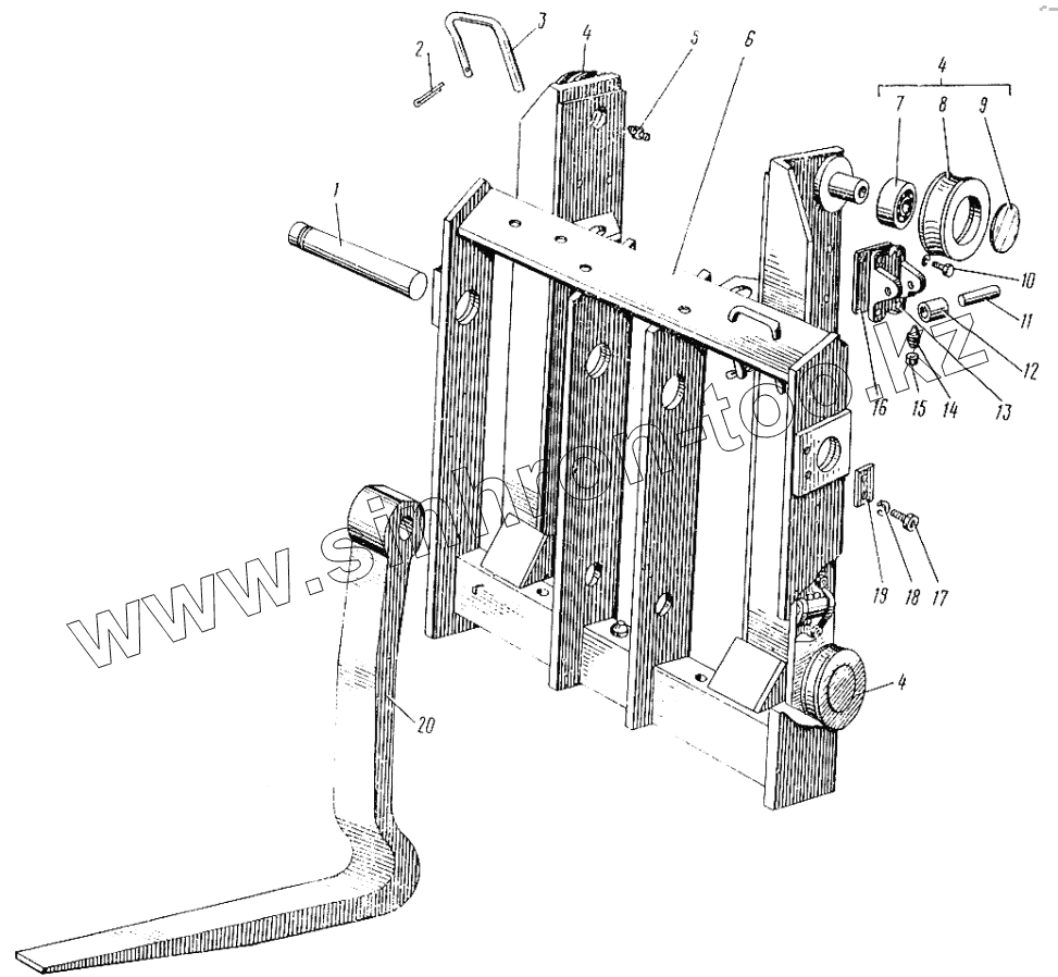 Каталог запасных частей к технике: ЛЗА 4043М. Каретка грузоподъемника и подхваты вилочные погрузчика 4043М