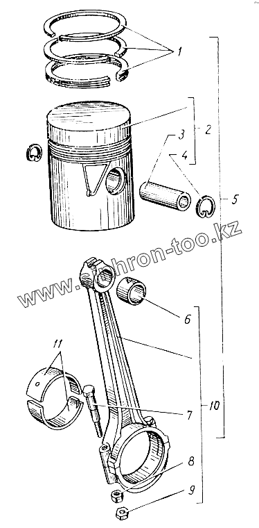 Каталог запасных частей к технике: ЛЗА 4043М. Поршни и шатуны