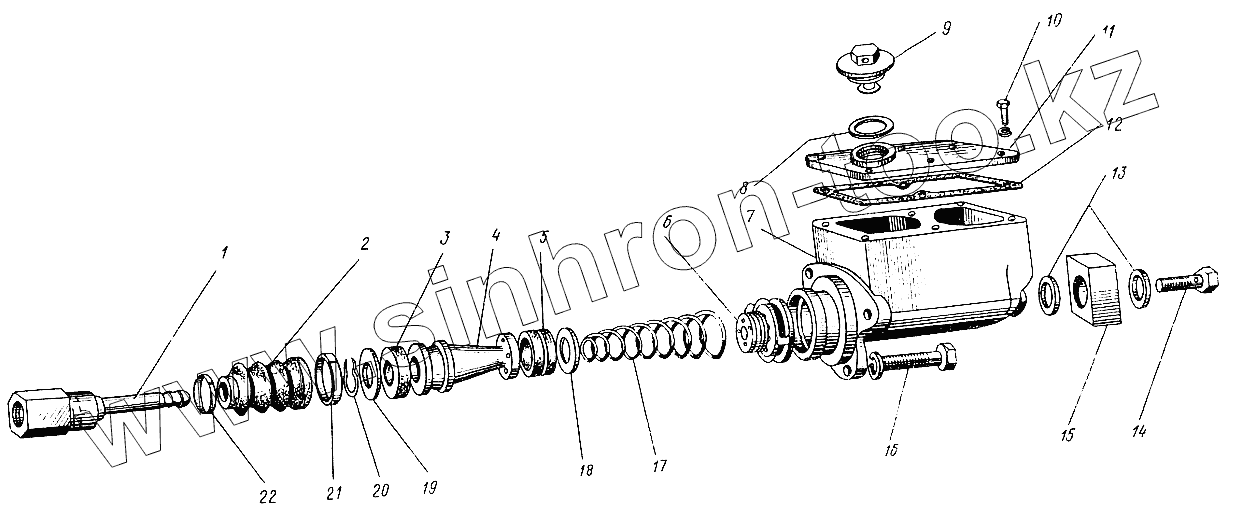 Каталог запасных частей к технике: ЛЗА 4043М. Цилиндр гидротормозов главный