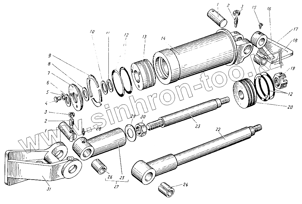 Каталог запасных частей к технике: ЛЗА 4043М. Цилиндр наклона грузоподъемника