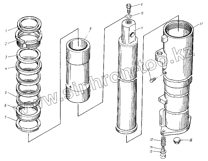 Каталог запасных частей к технике: ЛЗА 4043М. Цилиндр подъема грузоподъемника погрузчика 4045Р