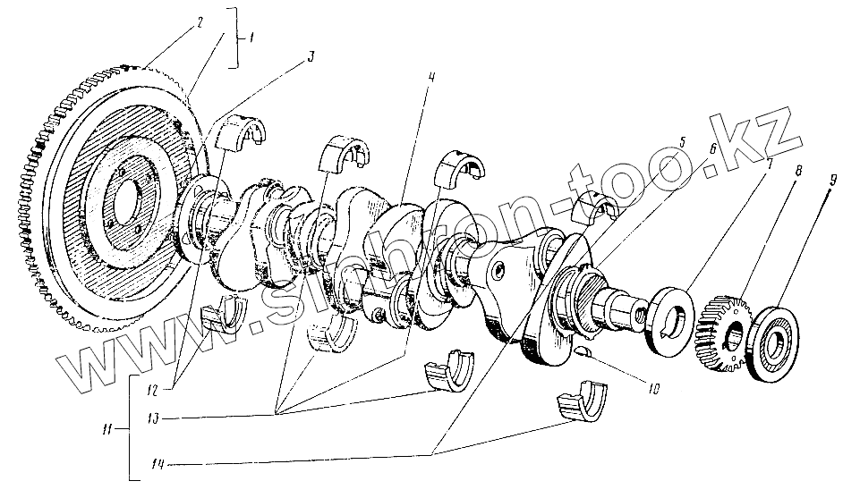 | 4 | 52-04-1005010-01 | Вал коленчатый и маховик в сборе | |
