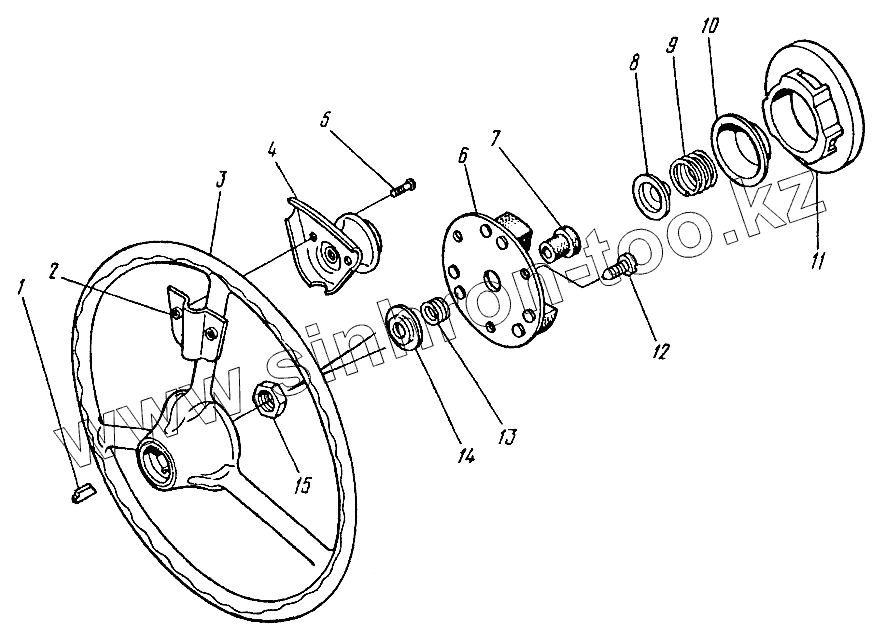 Каталог запасных частей к технике: ЛЗА 40810. Колесо рулевое и кнопка звукового сигнала 4000М-3402