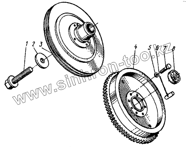 Каталог запасных частей к технике: ЛЗА 40810. Маховик и шкив двигателя 40810-1005