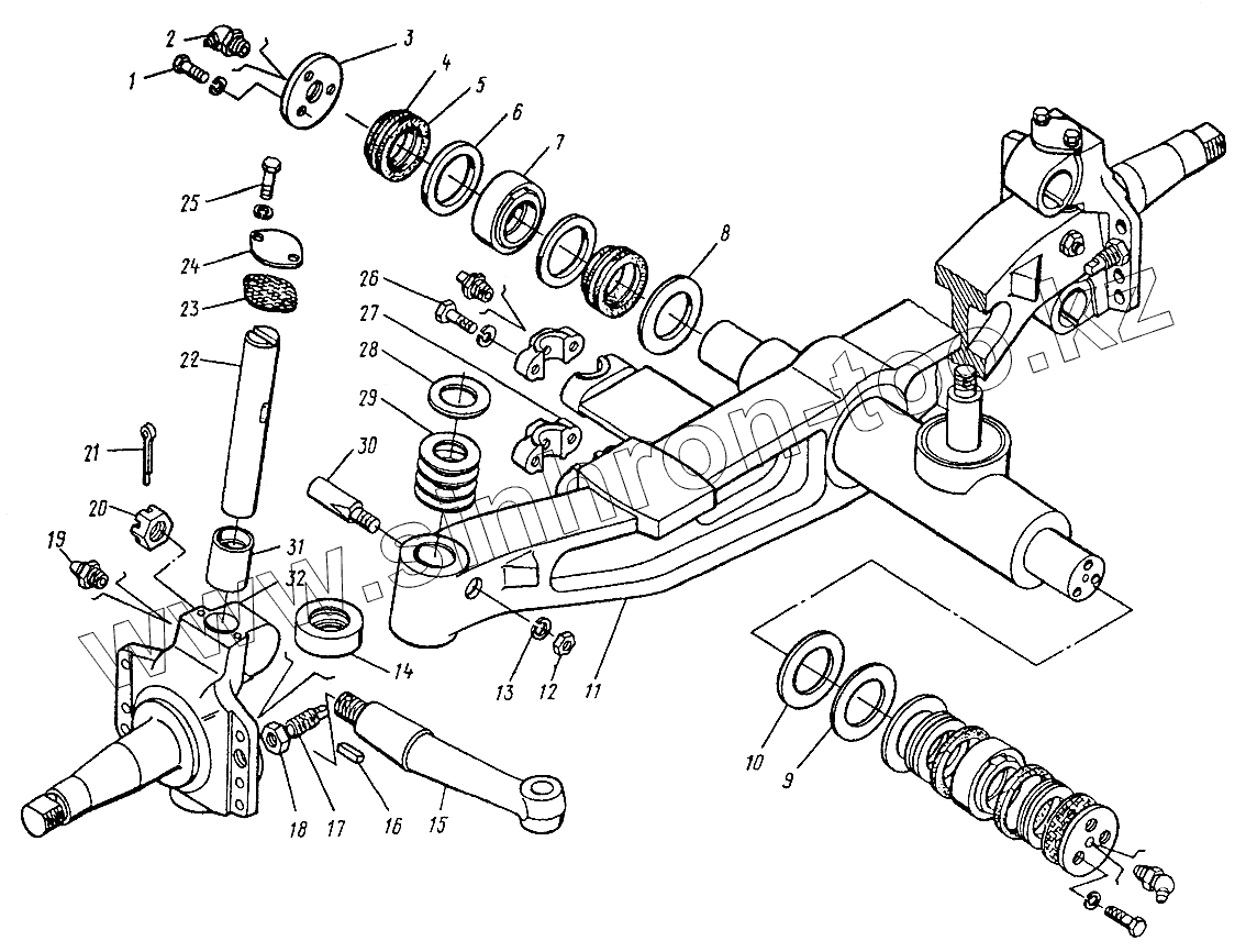 Каталог запасных частей к технике: ЛЗА 40810. Ось задняя и кулаки поворотные 40814-3001