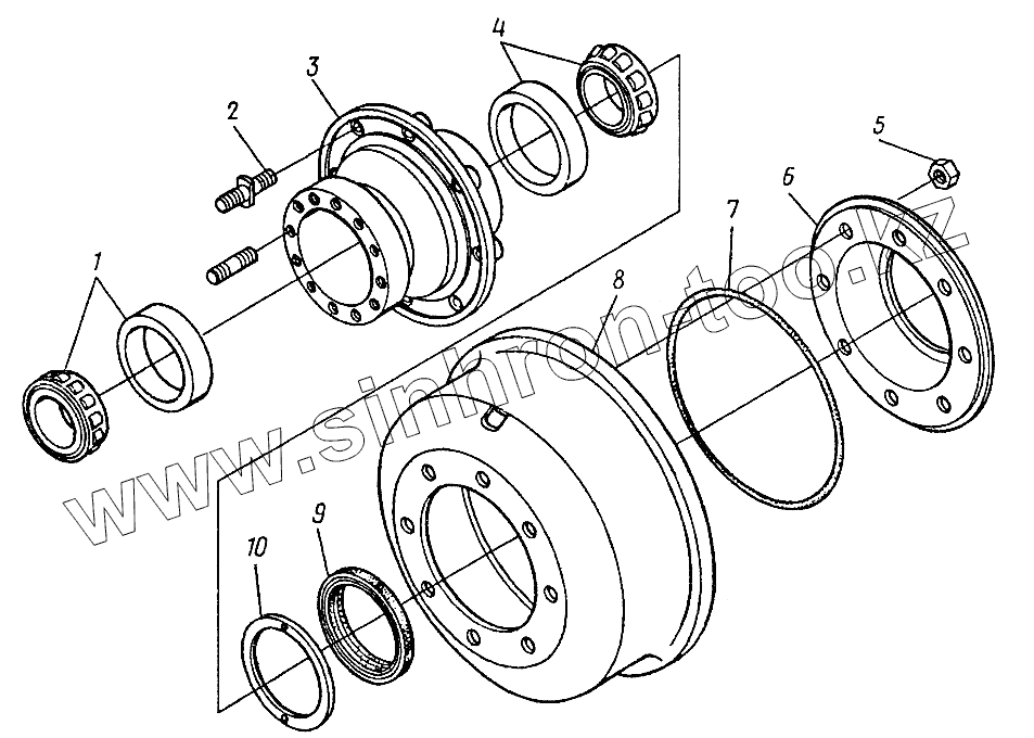 Каталог запасных частей к технике: ЛЗА 40810. Ступицы передних колес 130-3104