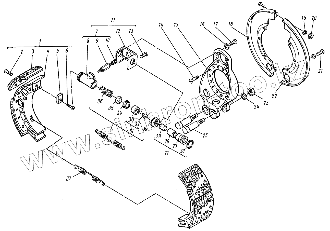 Каталог запасных частей к технике: ЛЗА 40810. Тормоза рабочие 4014М-3501-10