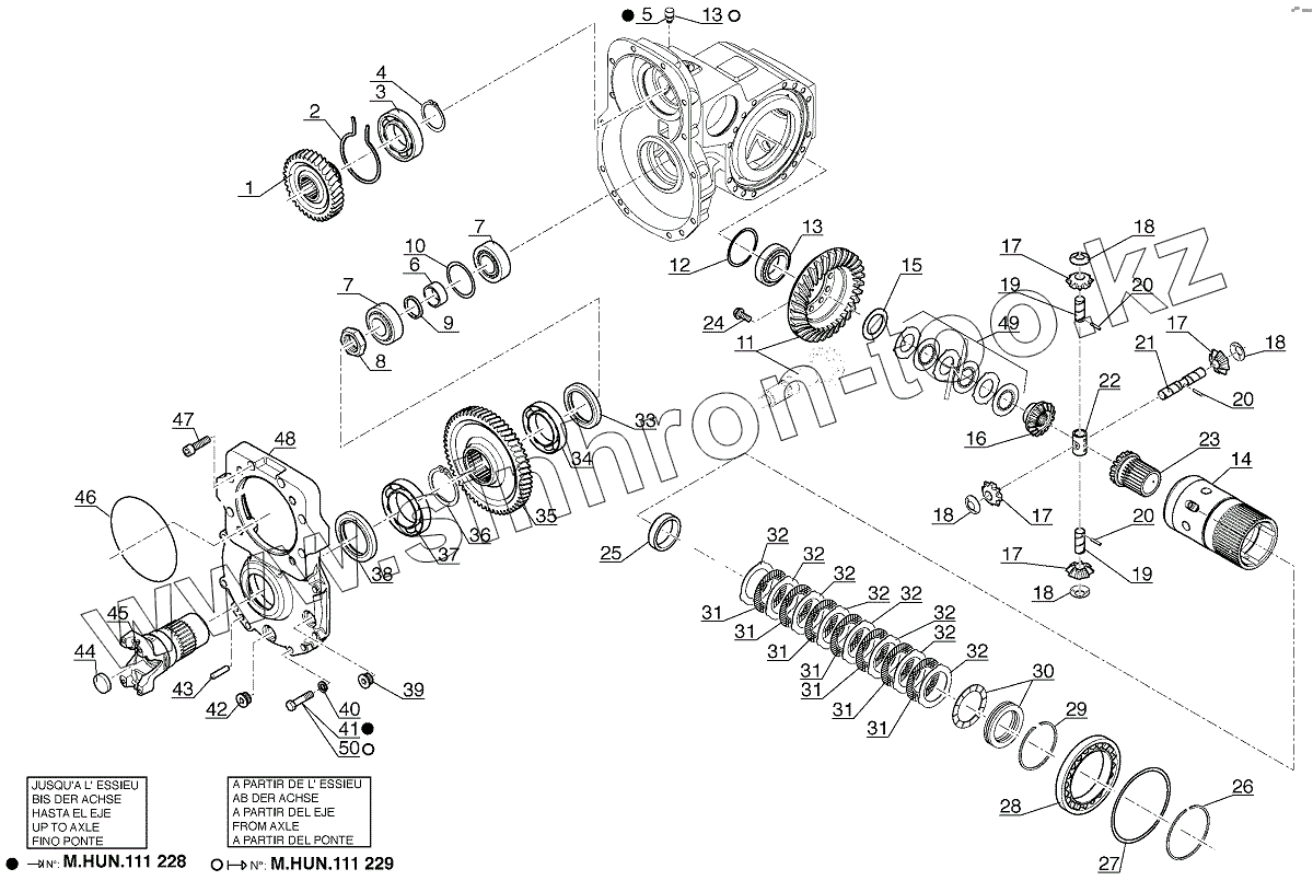 Каталог запасных частей к технике: MANITOU MLT 625-75 H. FRONT AXLE DIFFERENTIAL, AX 1911