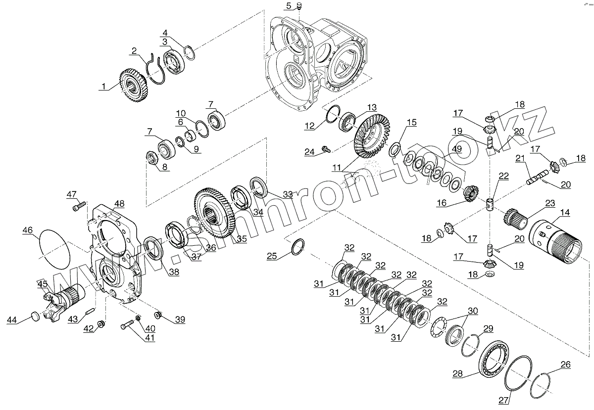 Каталог запасных частей к технике: MANITOU MLT 625-75 H. FRONT AXLE DIFFERENTIAL, AX 2048