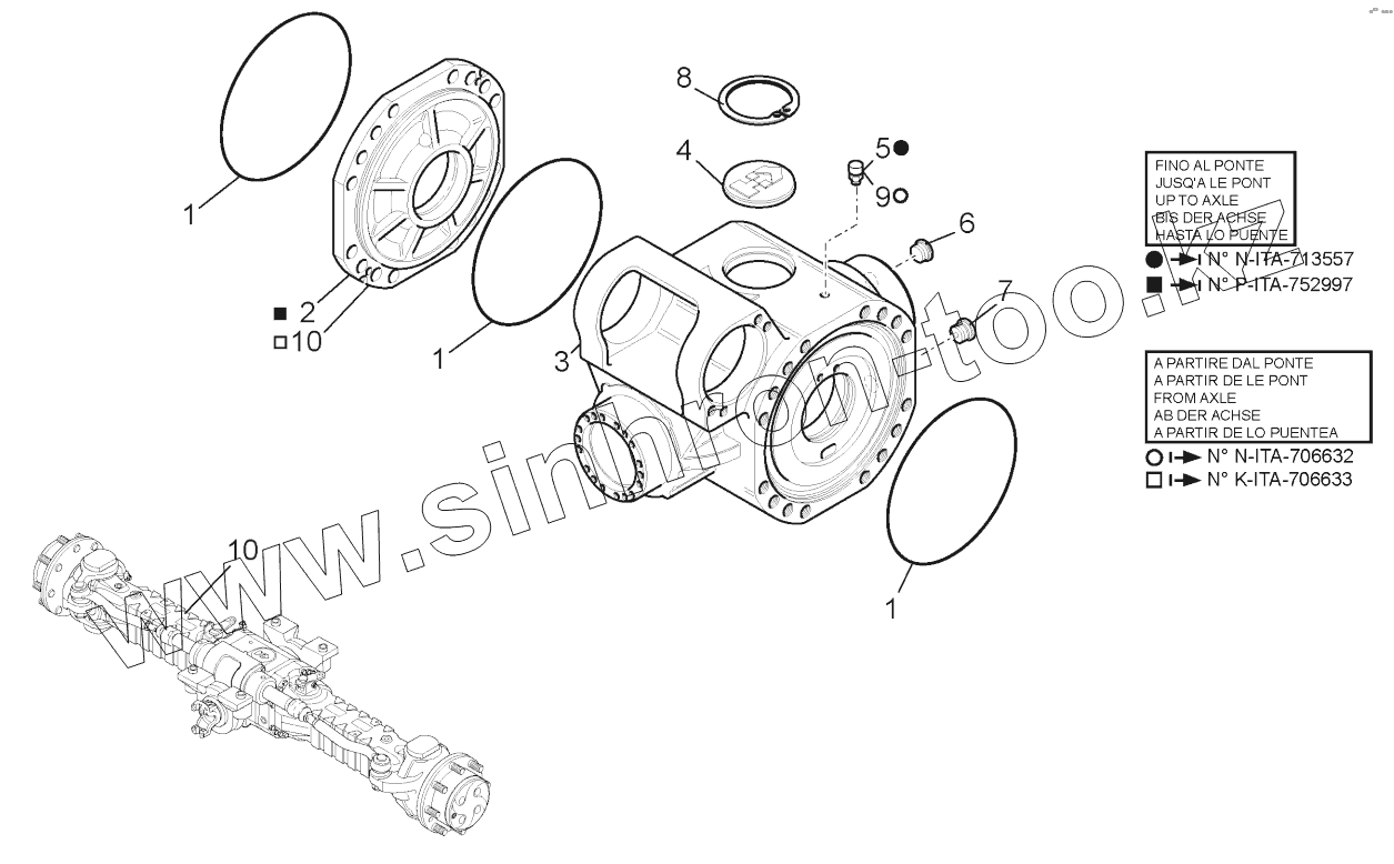 Каталог запасных частей к технике: MANITOU MT-X1740SLTS3-E3. FRONT AXLE CASING