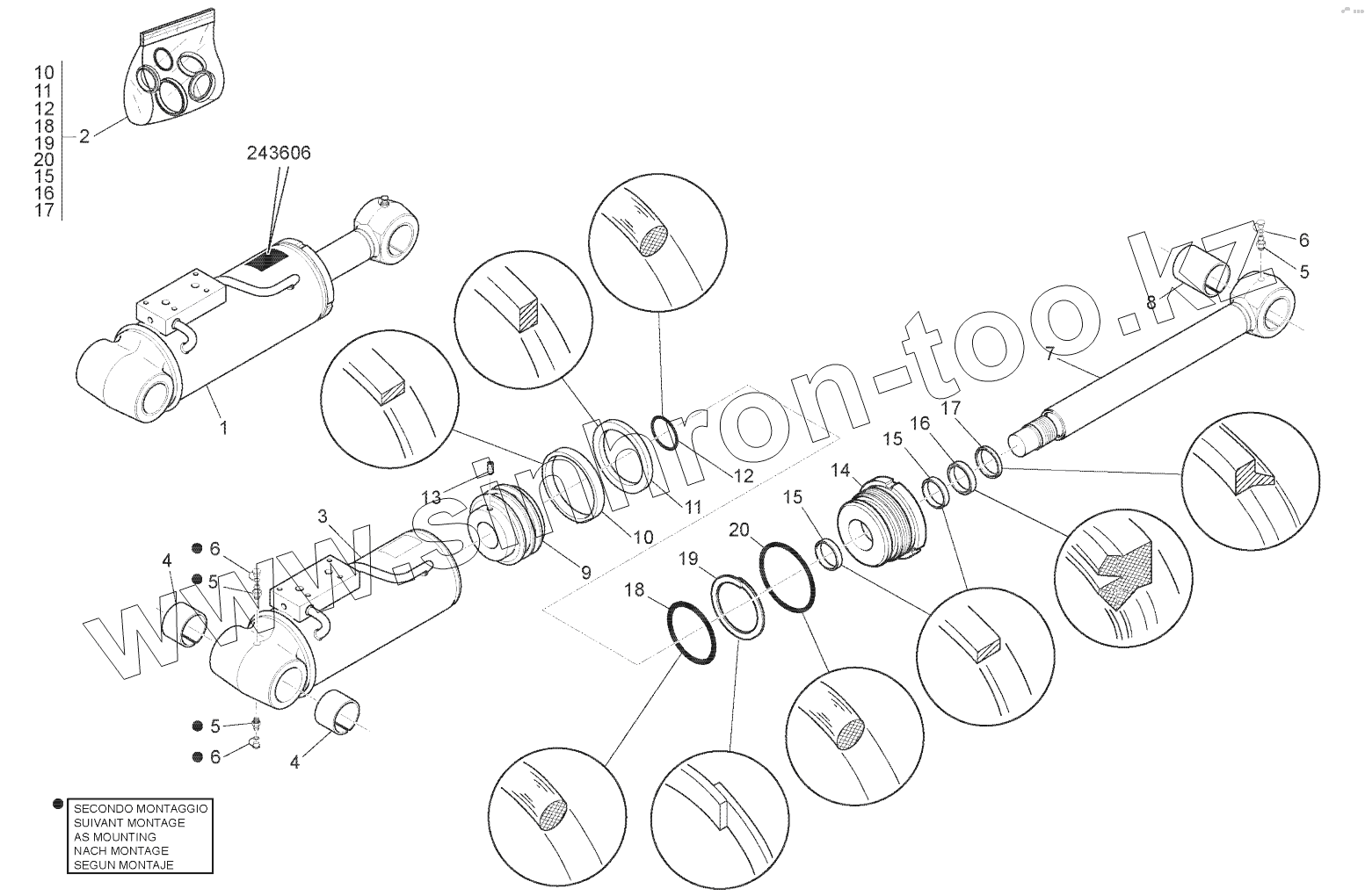 Каталог запасных частей к технике: MANITOU MT-X1740SLTS3-E3. HYDRAULIC (Leveling cylinder)