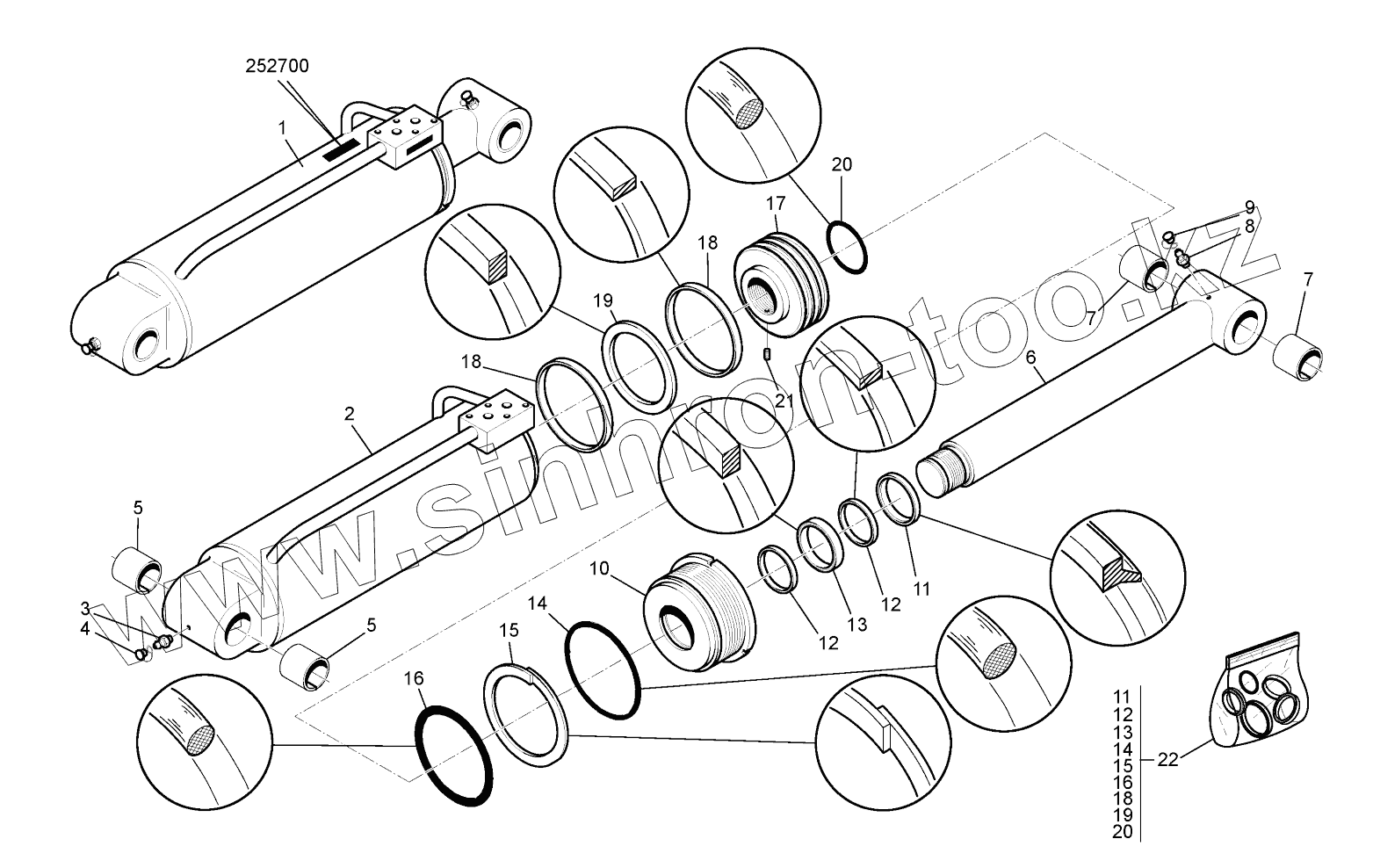 Каталог запасных частей к технике: MANITOU MT-X1740SLTS3-E3. HYDRAULIC (Tilt cylinder)