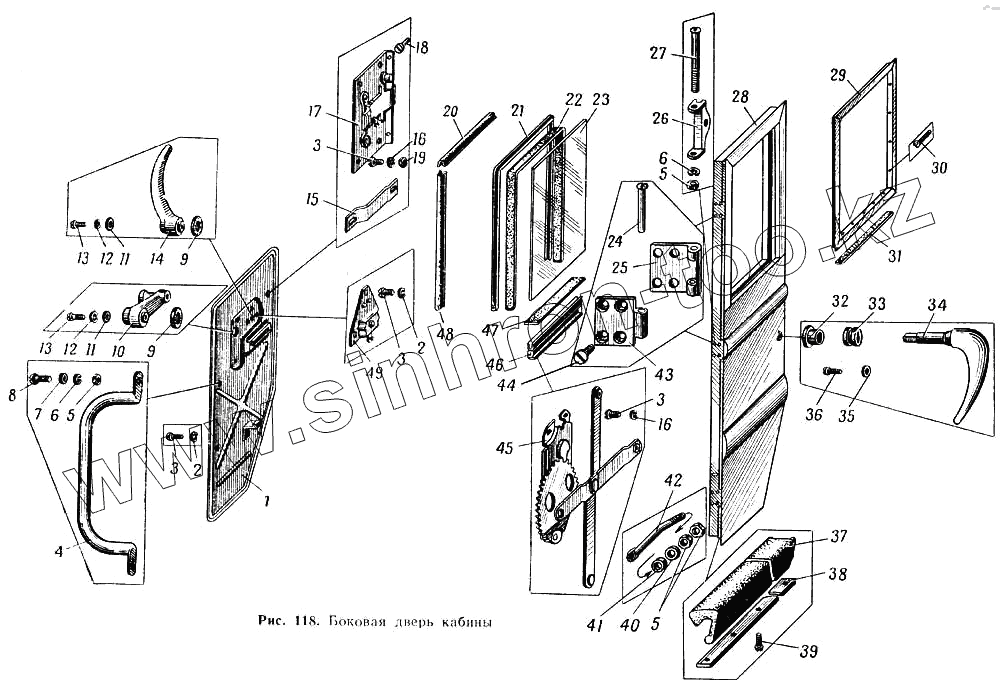 Каталог запасных частей к технике: МАЗ-537. Боковая дверь кабины