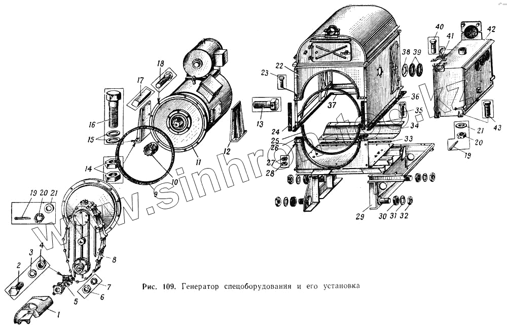 Каталог запасных частей к технике: МАЗ-537. Генератор спецоборудования и его установка