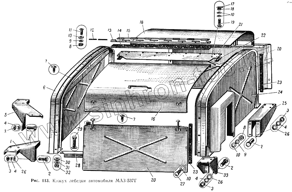 Каталог запасных частей к технике: МАЗ-537. Кожух лебедки автомобиля МАЗ-537Г