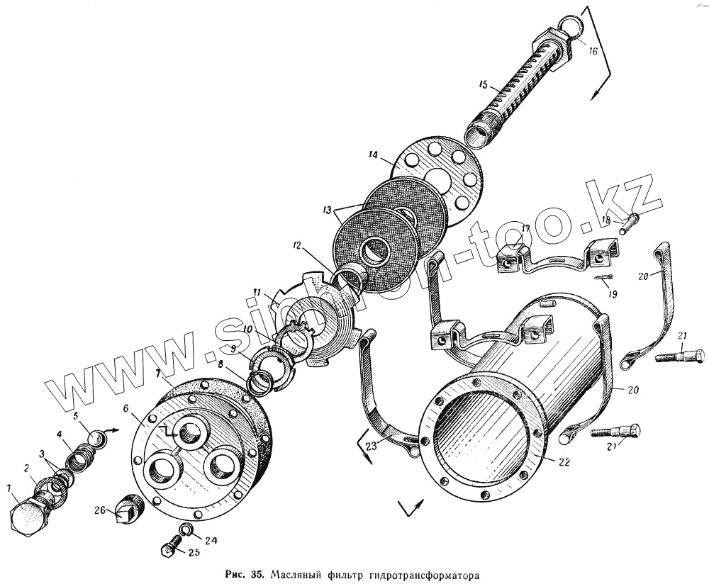 Каталог запасных частей к технике: МАЗ-537. Масляный фильтр гидротрансформатора