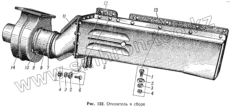 Каталог запасных частей к технике: МАЗ-537. Отопитель в сборе
