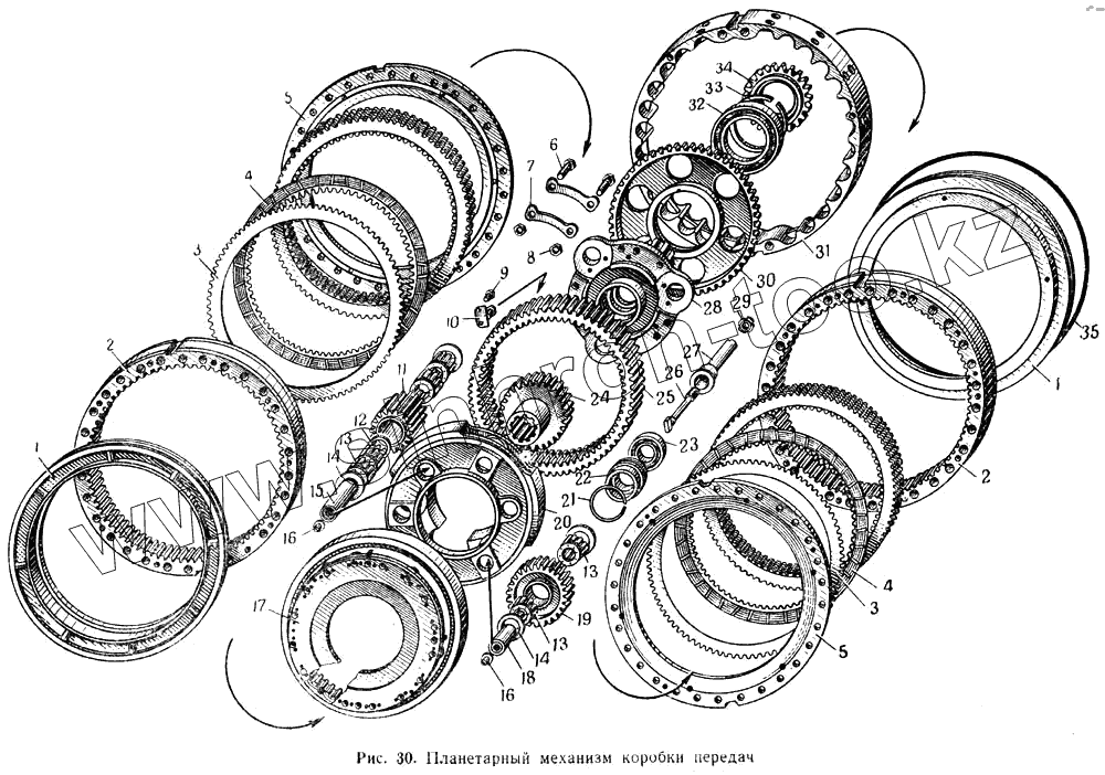 Каталог запасных частей к технике: МАЗ-537. Планетарный механизм коробки передач